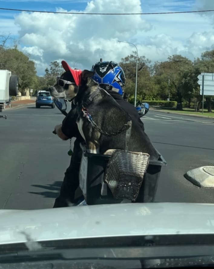 After a smooth trip to Busselton the first thing we saw was a black dog on the back of his mate’s bike.