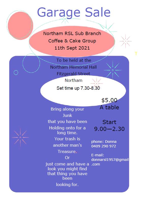 The Northam RSL is endeavouring to hold normal Anzac Day commemorations despite Covid-19 restrictions. At this time there will be the following activities:-